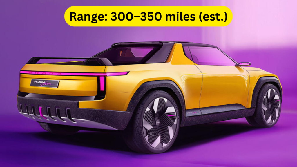 Skoda hasn’t released official figures, but based on the Vision 7S platform, the Felicia Fun Electric is expected to deliver around 300–350 miles of range on a full charge.